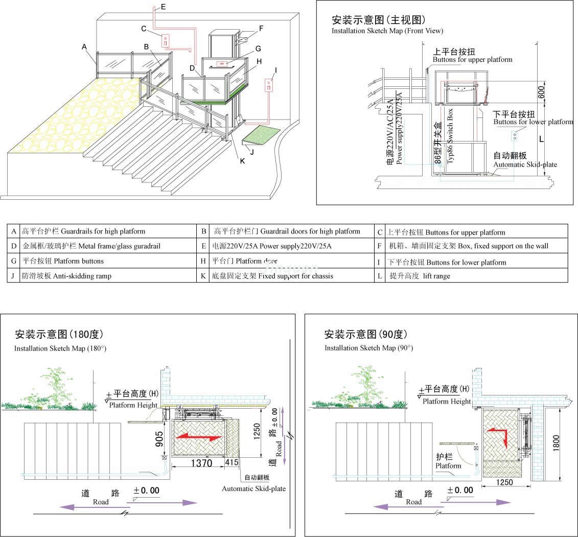 為了解決大量老式高層小區(qū)和公共場所的無障礙設(shè)施改造,我公司經(jīng)過大量的市場調(diào)查,結(jié)合原來產(chǎn)品研制開發(fā)了VL型無障礙升降平臺。VL型無障礙升降平臺采用大截面鋁型材垂直導(dǎo)向系統(tǒng),液壓或螺桿驅(qū)動,升降平穩(wěn)安全,外部采用鋁板靜電噴塑機箱和面板、外型高檔。直接安裝于地面,無需土建配套地坑,施工簡便,產(chǎn)品放置戶外不易積水,不易生銹,維護簡便。螺桿式驅(qū)動能適應(yīng)零下40度的低溫,適用于我國北方地區(qū)。