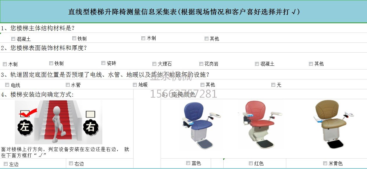 要的位置;使用腳踏板時無線遙控器失靈;齒條和齒輪傳動系統可以提供安全,穩定的操作;標準傾斜角度 23至 45度度調節單元,可以方便地將座椅調節到合適的位置;智能設計,帶語音,指示燈,讓您看到更多的自我診斷結果;預先設計的導軌可以輕松安裝在樓梯踏板上